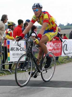 A l'attaque du 2e tour, le favori Ramunas NAVARDAUSKAS stagière au CMC à Aigle. Il est porteur du maillot de leader du Trophée Franco-Suisse suite à sa victoire à Fully |