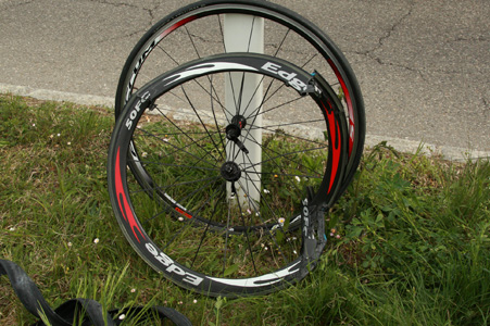 Alors que le peloton passe à vive allure, Daniel GOCAJ a cessé le combat... |