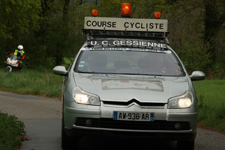 Derrièe la voiture d'ouverture de course se dessine la première tentative d'échappée.... Il y en aura encore bien d'autres au fil des 20 tours du circuit. |