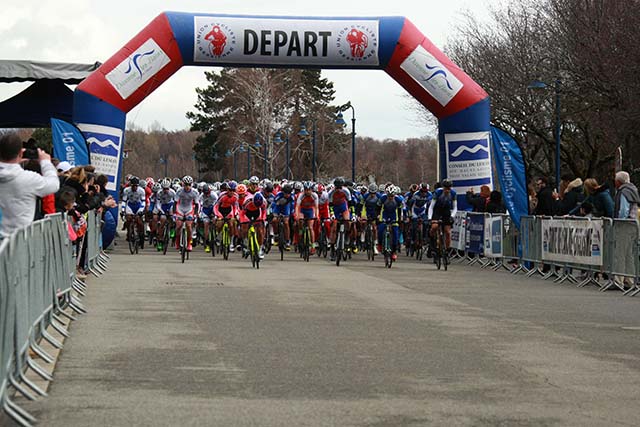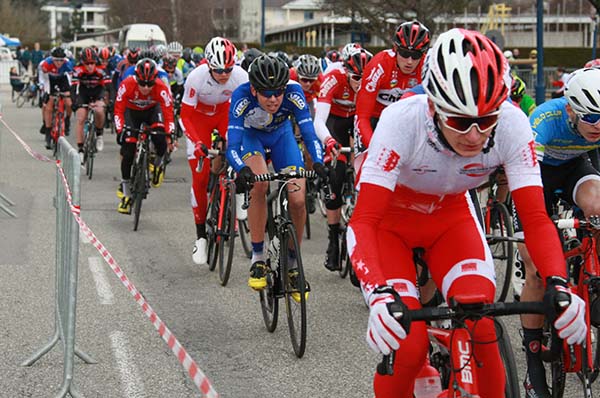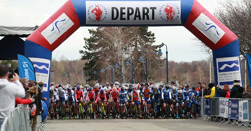 126 Coureurs Juniors (17-18 ans) au départ de la 1ère Etape. Un circuit autour du Lac de Divonne-les-Bains de 3135 m à parcourir à 30 reprises, soit 94.05 Km |