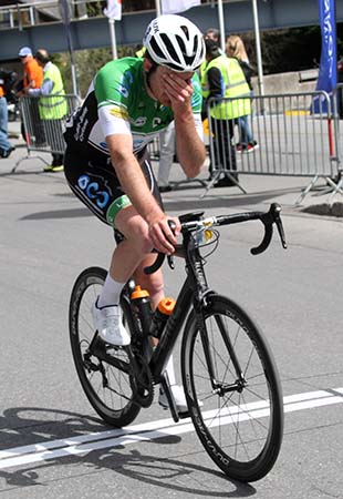 Jordan LABROSSE s'est battu jusqu'au bout... mais son retard de 2:04 ne lui permettra pas de conserver sa tunique jaune. |