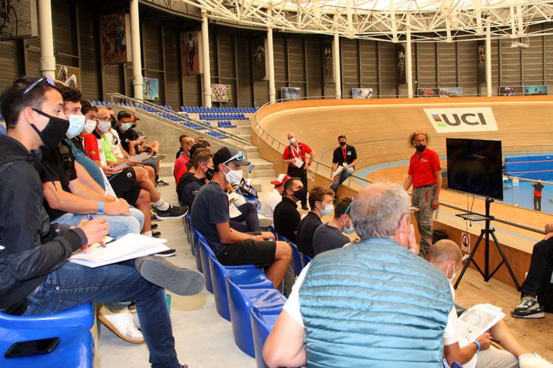 Réunion des Directeurs sportifs sous les ordres du Président du Jury, Emmanuel GUERIN 25 Equipes sont présentes, 134 coureus prendront le départ du TLJ 2021 |